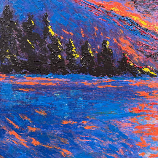 Pond Hockey at Sunset PRINT Art on Canvas (Centre Piece)