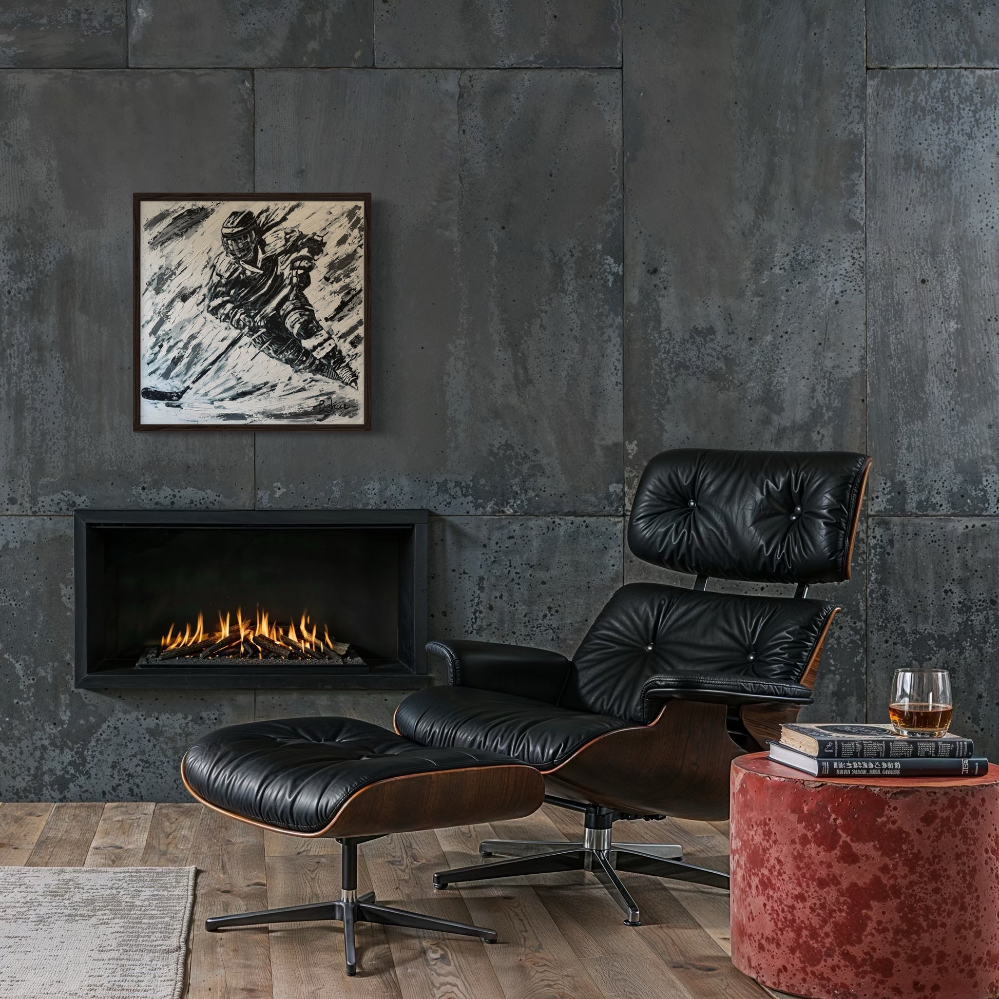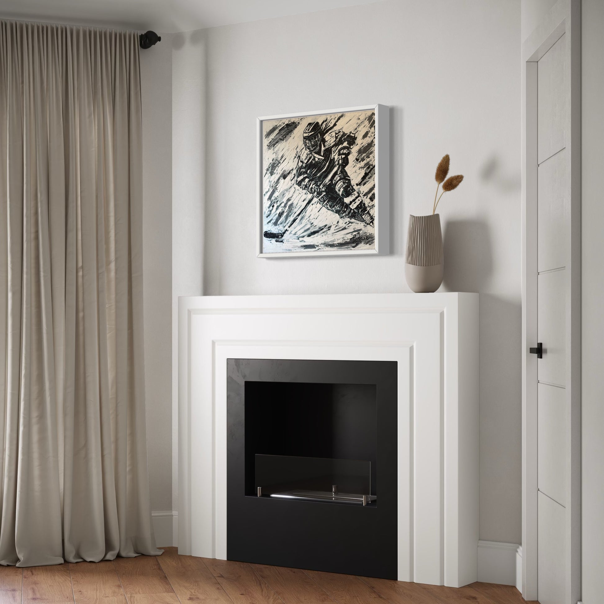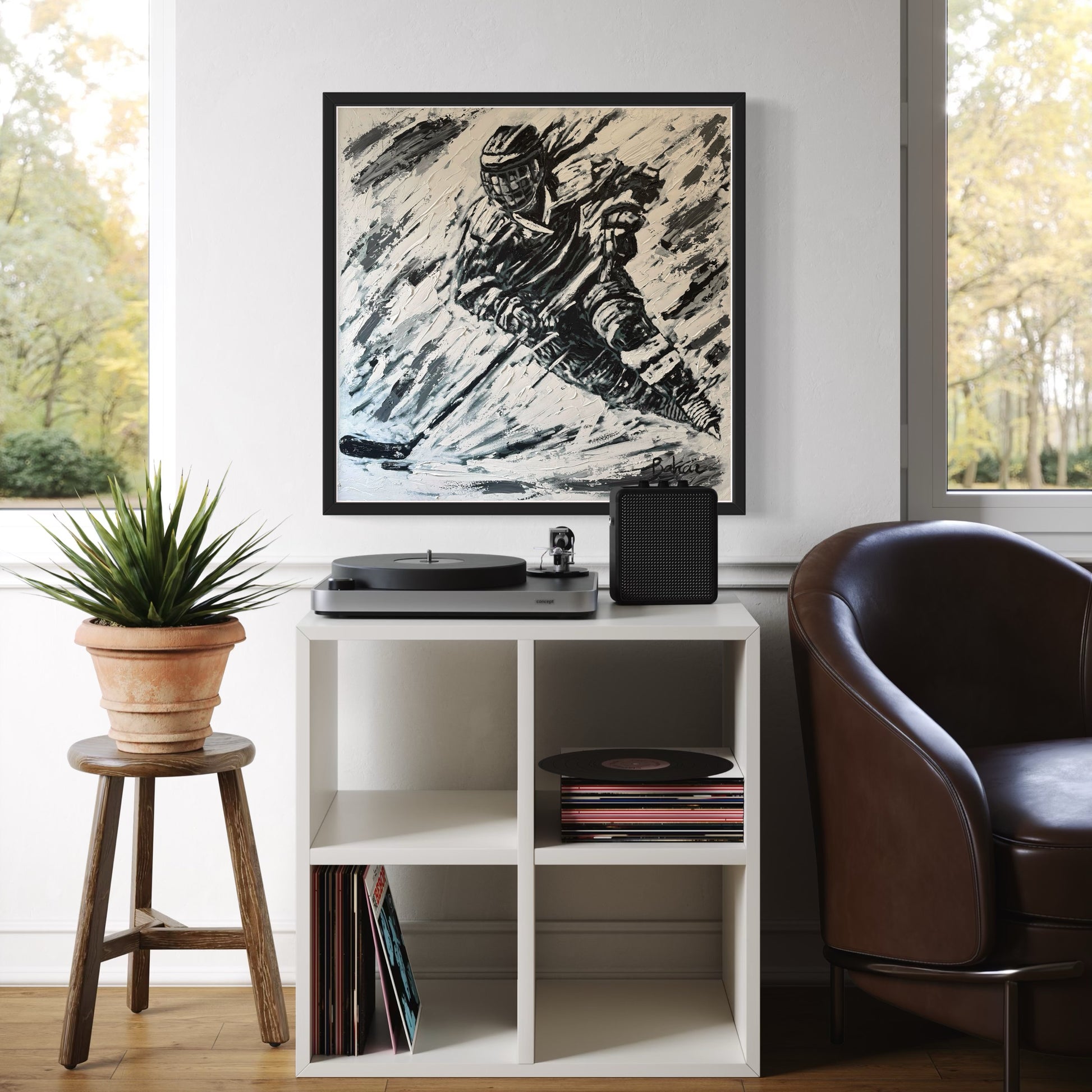 Originally painted in textured acrylic art, this print from the original piece captures the raw energy of the game, with bold strokes that convey speed, precision, and resilience. The monochromatic palette enhances the dramatic intensity, emphasizing the athlete’s strength and focus as she moves across the ice. The dynamic brushwork mirrors the fast-paced nature of the sport, blending motion and emotion into a visually captivating piece.